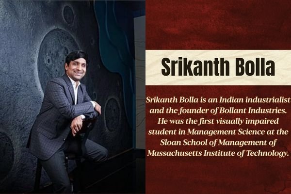 Srikanth Bolla is an Indian industrialist, entrepreneur, and philanthropist. He is the co-founder, Chairman, and CEO of Bollant Industries, a company specializing in sustainable and eco-friendly packaging products made from areca palm leaves and other natural materials. He was born visually impaired (blind) and is known for overcoming extreme challenges to become a successful business leader.